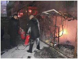 2020128日晚2050分,沈陽廣播電視臺北院家屬樓南側1單元飯店突發(fā)火情,家屬樓值班人員第一時間發(fā)現情況及時與我處門衛(wèi)聯系尋求幫助,門衛(wèi)保安隊員在了解情況后馬上聯系值班班長孫永升,孫永升出于職業(yè)的敏感性,馬上啟動緊急預案,向監(jiān)控中心及隊長進行報告后,帶領保安隊員及消防設備一同趕赴火災現場。